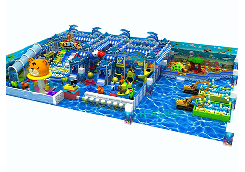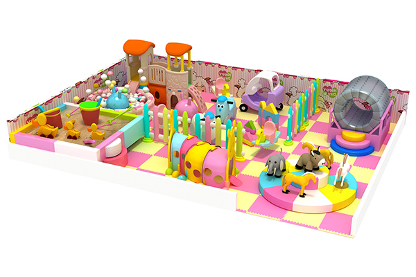 This type includes standard play elements like slides, ball pits, climbing areas, and bridges. It’s focused on fun, safety, and colorful visuals.