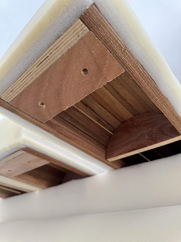 Internal structure is multi-layer plywood (≥15mm), wrapped with high-density foam, and covered with imported heavy-duty PVC for excellent strength and safety. Surface is abrasion-resistant and easy to clean.